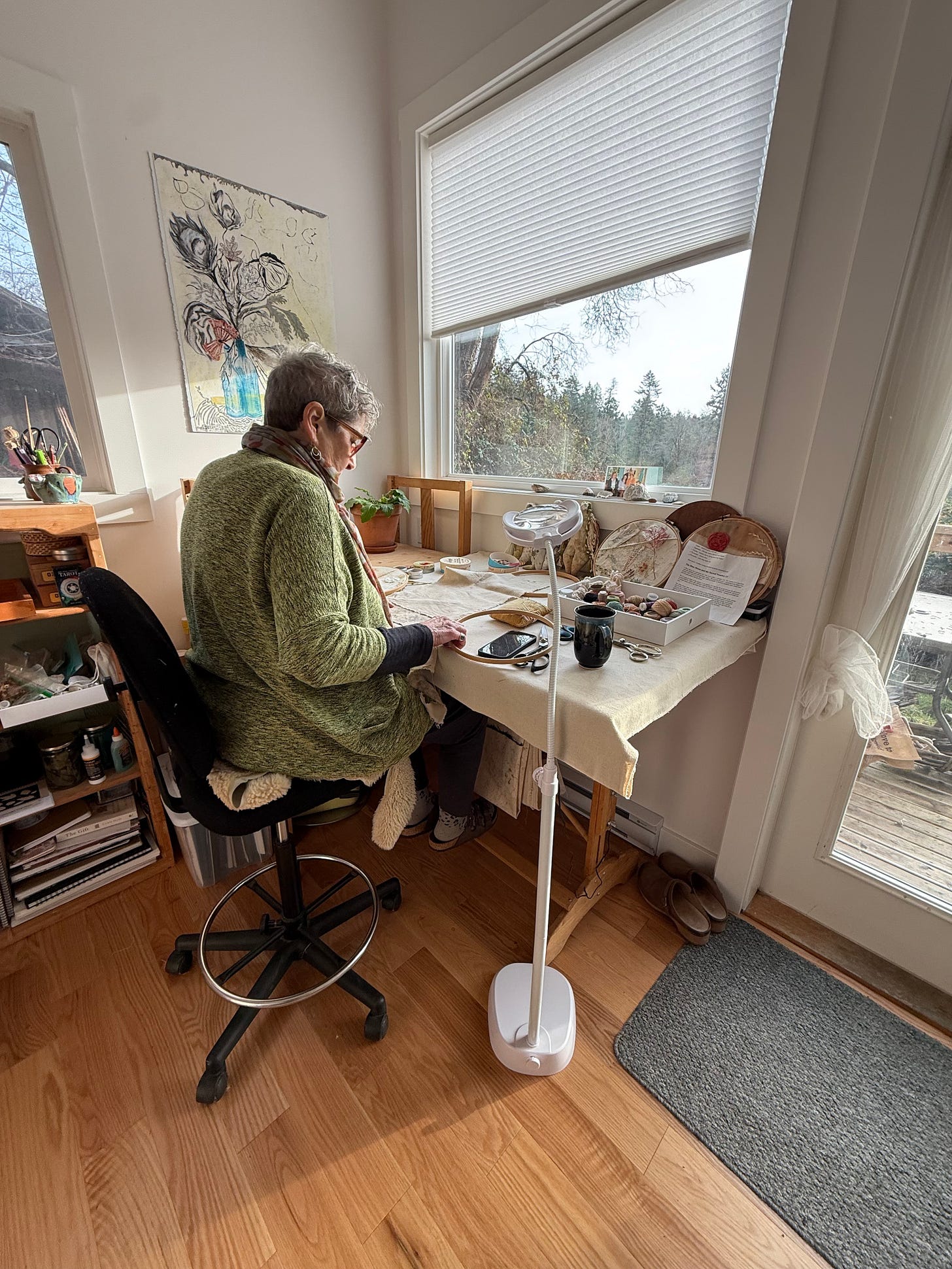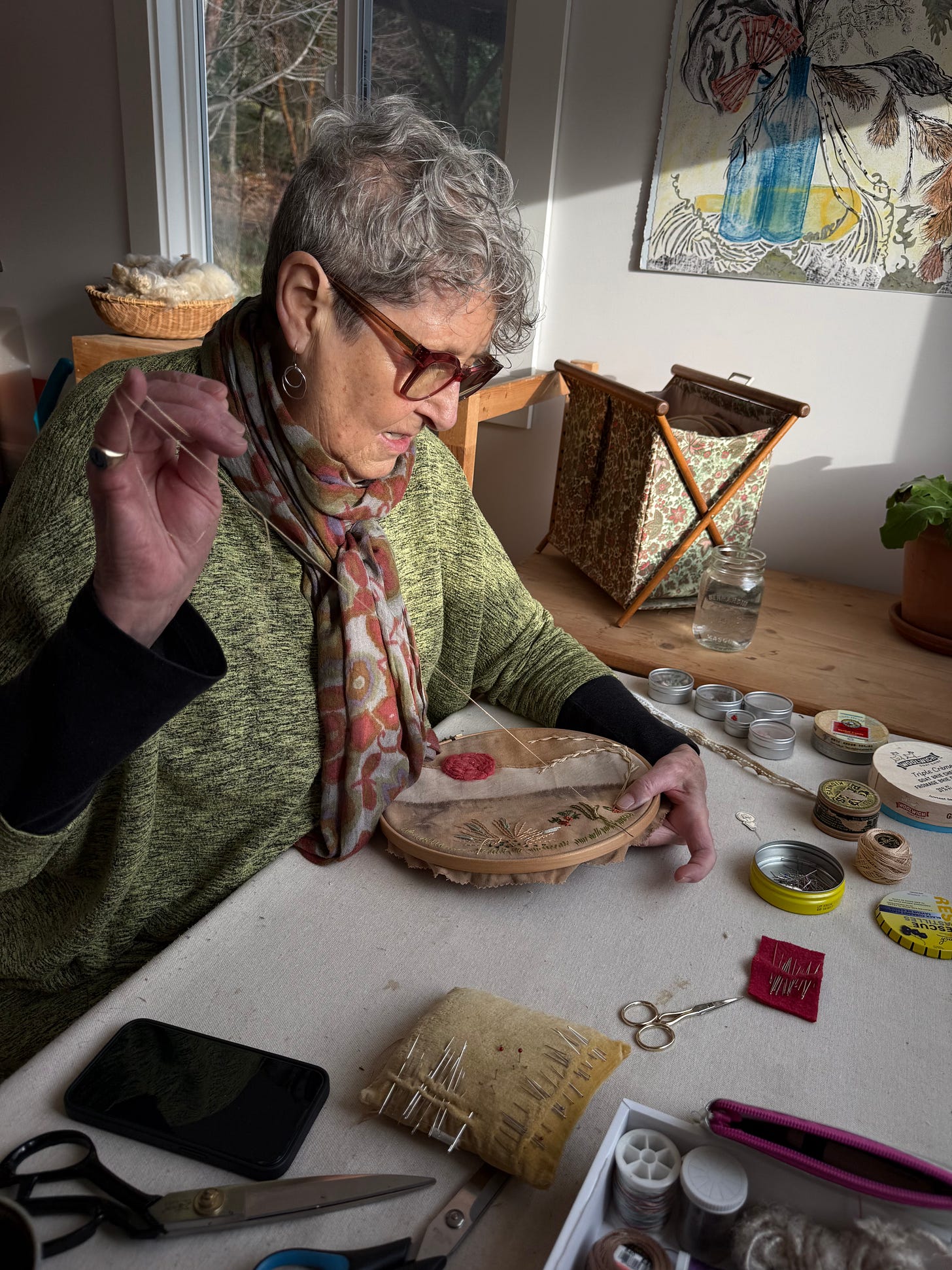 The bright light in my studio beckons on these dark days drawing me into the comfort of slowly stitching my way through my latest collection, and opening portals to ideas for what is to come in 2026. The winter celebration time now just a few days away promises the turn towards the light a time to be grateful for everything in my life , I’m slowing down, emphasizing connection with dear friends, reflecting on summer’s many days of warmth, luxurious lake swims, brilliant sunsets, fresh farm foods and lazy evenings on the deck waiting for the stars.